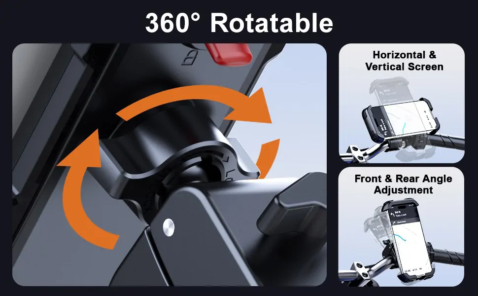 Ha szereted, ha mindened pontosan ott van, ahol kell – a navigáció egy pillantással látható, a hívásaid kezelhetők, a zenéid indíthatók –, akkor ez a telefontartó neked szól. A 360°-os forgathatóságnak köszönhetően bármilyen szögbe beállíthatod a kijelzőt, akár vízszintesen, akár függőlegesen szeretnéd látni. Ez különösen hasznos navigálásnál vagy sport- és útvonalrögzítő alkalmazások használatánál.