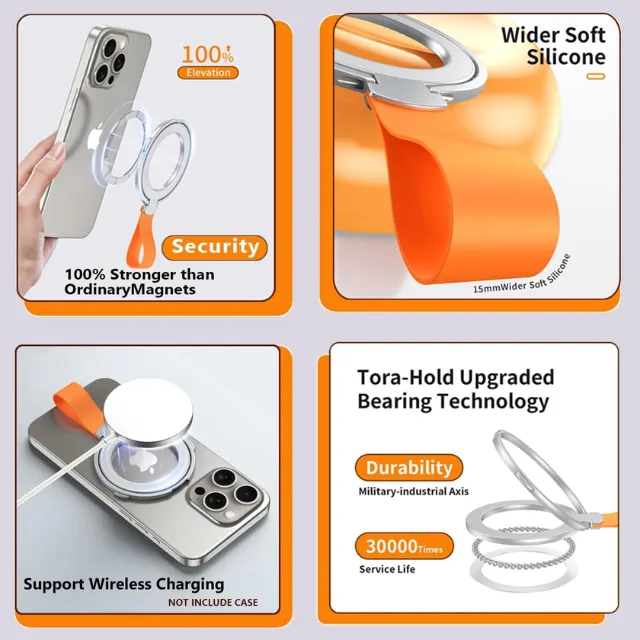 🧲Erő, amire számíthatsz – N52 mágneses tartás: Az N52 mágnes erőteljesen tapad, így a gyűrű mindig biztonságosan rögzül telefonodon. Nem mozdul el, nem csúszik meg – stabilitás minden helyzetben, legyen szó videózásról, fotózásról vagy multitaskingról.